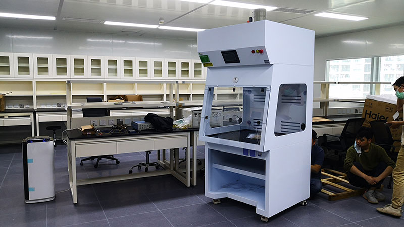 該學校由于本校實驗室無法滿足日常使用,所以附近的商業大廈租用些辦公室用于建設實驗室,但是由于該樓是商業用樓無法安裝用于廢氣處理的管道系統,所以需要無管道凈氣型通風柜來做實驗,滿足用于日常教學及學生的研究使用。